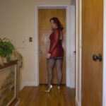 Cherry decides to start trying on some of JJs wardrobe and high heels with her garter belt, satin panties and fully fashioned stockings. She struts around in various 5 and 6 inch heels and tries on a few dresses. She leans over often giving us nice views. She prances down a hallway and even the steps. JJ comes up and accuses her friend of taking stuff without permission and she thinks a punishment is in order. She ties Cherry up and has her try on heels with her hands tied. She leads her around leashed up and then she takes her into a bedroom where she struggles on an old sofa and then gets hogtied while ballgagged. JJ wanders out of the room and Cherry squirms around and eventually gets the hogtie rope untied and sits up very proud of herself. JJ comes back in annoyed. She removes her own panties and replaces the ballgag in Cherry’s mouth with her panties, wrapping layers and layers of clear tape around her head before tipping her over and tying her into a little ball, which proves to be far more difficult for her to escape from.