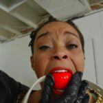 Now Cherry is dressed in a black garter and stockings, bra and tiny lace panties. She is leashed by a crotch rope and JJ drags her around ballgagged. Cherry finds herself on a daybed with a vibrating wand up against her body. Then Cherry finds herself having to worship JJ’s pantyhose clad legs and feet. The rag goes to her face again.